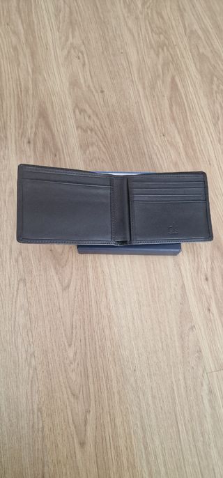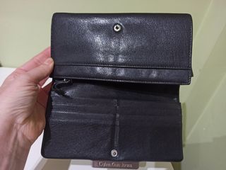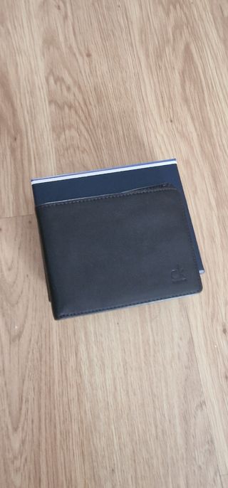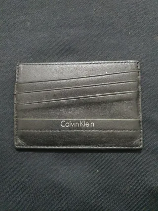 Cartera para tarjetas de la marca Calvin Klein. - Color negro. - Presenta un ligero desgaste.