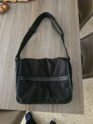 Bolso de mano o bandolera de la marca Calvin Klein, ideal para llevar documentos o un portátil. - Diseño moderno y funcional. - Compartimento principal espacioso, con otro compartimiento dentro con cremallera - Correa ajustable para mayor comodidad. - Cremallera en solapa delantera. - En la parte trasera lleva otro compartimento. - Medidas largo 31, alto 25