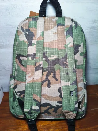 Mochila Vans Old Skool, nueva con etiquetas. Estampado de camuflaje. Logo bordado Bolsillo lateral para botella de agua. Varios compartimentos y apartado acolchado para el portátil o tablet. Capacidad de 22L Dimensiones 41 alto x 30,4 ancho x 12 fondo Tamaño normal para colegio o instituto. Más modelos en mi perfil.
