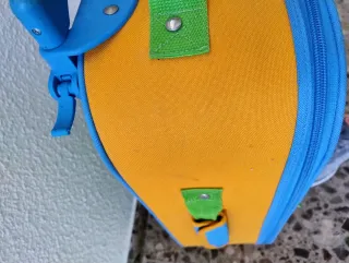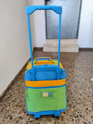 Maleta infantil con diseño de Piolín. Perfecta para viajes cortos o para llevar al colegio. - Asa extensible y ruedas para facilitar su transporte. - Cierre de cremallera. - Material resistente y fácil de limpiar. Tiene roces del uso, como se ve en las fotos.