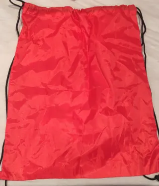 Bolsa de tela roja con cordones negros, ideal para llevar material escolar o deportivo. Presenta un diseño circular con el logo del AMPA (Asociación de Madres y Padres de Alumnos) del Colegio Sagrado Corazón de Molina. - Material: Poliéster. - Cierre con cordones. - Logo del AMPA Colegio Sagrado Corazón Molina.