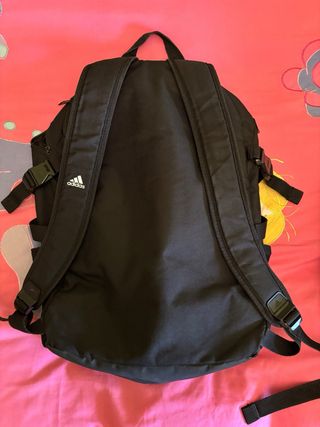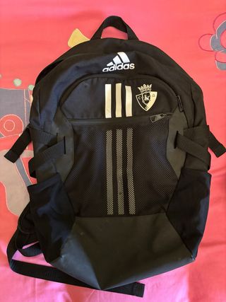 Mochila original Adidas del CA Osasuna, en color negro con detalles blancos. Cuenta con varios compartimentos, bolsillo frontal de rejilla y tirantes ajustables. Cómoda y resistente, ideal para el día a día, deporte o colegio. En buen estado, con signos normales de uso.