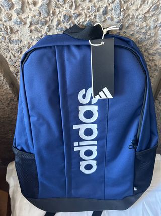 Mochila de la marca Adidas en color azul. Mochila Adidas azul completamente nueva, sin estrenar. Diseño deportivo con logo grande de Adidas. Tiene varios compartimentos con cremallera y bolsillos laterales de malla, perfecta para el colegio, gimnasio o uso diario. Muy cómoda, resistente y con buen espacio interior.