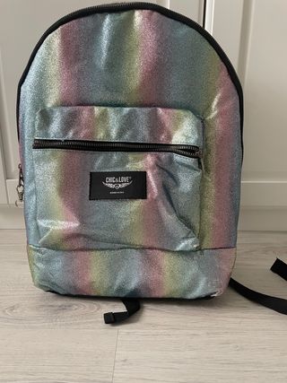 Mochila infantil acolchada de Stephen Joseph, ideal para la guardería o el colegio. Es preciosa y está en perfecto estado. - Diseño con mariposa bordada. - Bolsillo delantero con flores bordadas. - Cordones para ajustar el tamaño. - Asa superior para llevarla en la mano.