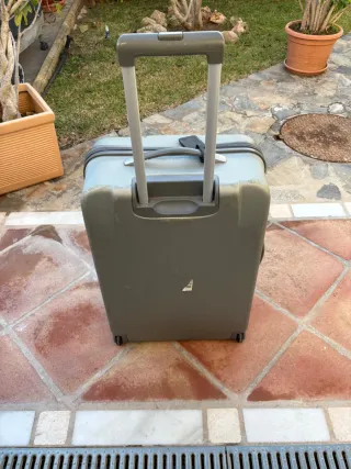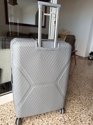 Maleta grande en perfecto estado, casi sin uso. Sus dimensiones son 79x50x35 cm. - Asa retráctil para facilitar el transporte. - Ruedas para un desplazamiento suave. - Cierre de seguridad con combinación.