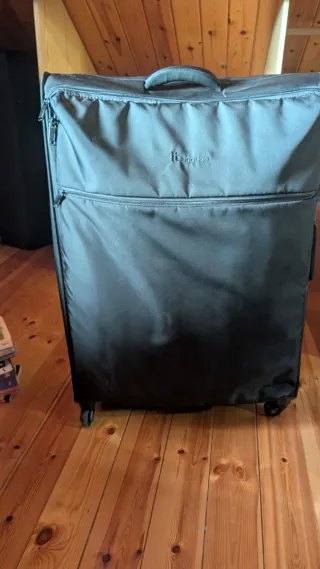 Maleta grande de la marca it luggage en color negro. Cuenta con ruedas para facilitar su transporte. - Asa superior retráctil. - Bolsillo frontal con cremallera. - ruedas bidireccionales -55x70x30