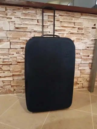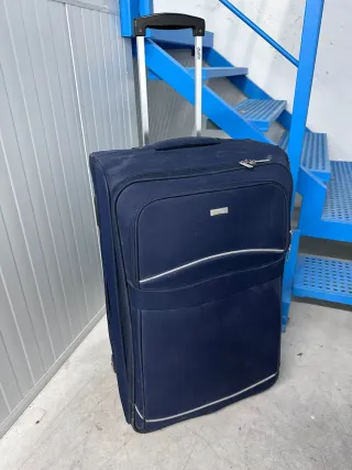 Maleta grande, funcionan todas las cremalleras. Asa plegable y ruedas. Medias: Alto 83cm, ancho 55cm y profundidad 28cm ( se puede agrandar )
