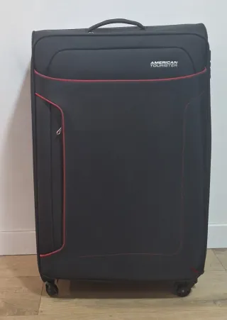 Maleta de gran tamaño con un diseño práctico y espacioso.Con ruedas y asa para llevarla . Mide de largo 76 centímetros y 36 de ancho Diferentes compartimentos Tiene algún pequeño desperfecto por el uso ( ver fotos) Desgastado una esquina y algún roto en el bolsillo de malla - Asas resistentes para un transporte cómodo. - Cierre de cremallera. - Compartimento principal amplio.