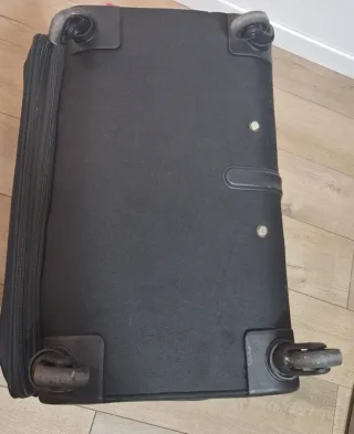 Maleta grande para viajes con medidas de 40x64x25 cm. - Diseño moderno y resistente. - Ruedas para facilitar el transporte. - Asa extensible. de las cuatro ruedas una no gira bien. Se puede usar a dos ruedas.
