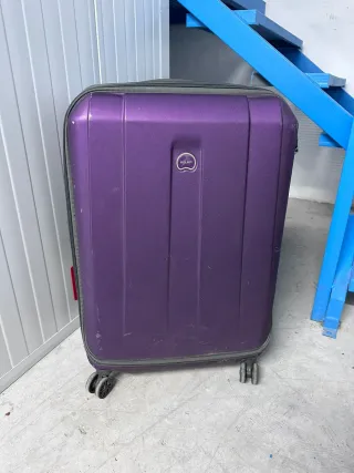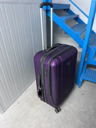 Maleta grande de viaje en color morado. Tiene algunos arañazos pero la maleta está en buen estado. Está en Granada, también hago envíos - Diseño espacioso y resistente. - Ruedas para facilitar el transporte. - Asa extensible.