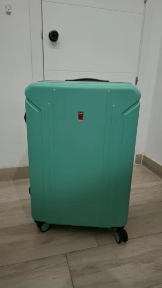 Maleta de tamaño grande (L) en un llamativo color turquesa y otra roja. Perfecta para viajes largos. Vendo ambas - Diseño moderno y resistente. - Cuatro ruedas para facilitar el transporte. - Asa extensible.