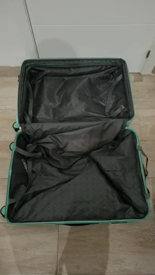 Maleta de viaje en perfecto estado, utilizada una sola vez. - Diseño moderno y funcional. - Tirador retráctil y ruedas para facilitar el transporte. - Compartimento principal espacioso. Medidas 73 por 24