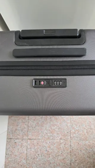 Maleta de viaje de tamaño mediano con un diseño moderno y resistente. - Cerradura de combinación integrada. - Asa extensible y ruedas para facilitar el transporte. - Cremallera robusta para un cierre seguro.