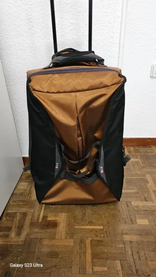 Maleta de viaje Delsey con 63cm de altura y 41cm de anchura ,poco uso un diseño moderno y funcional. - Color principal marrón con detalles en negro. - Asa extensible para facilitar el transporte. - Ruedas para un desplazamiento suave.