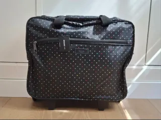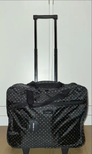 Maleta de Misako, ideal para escapadas cortas. Es pequeña y manejable. No ha sido usada, viene con el relleno de la tienda. - Diseño con estampado de estrellas de colores. - Asa de mano superior. - Cuatro ruedas giratorias para facilitar el desplazamiento. - Compartimento principal con cierre de cremallera.