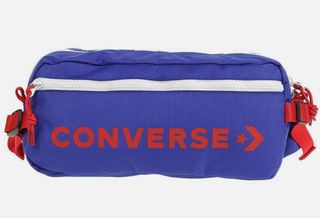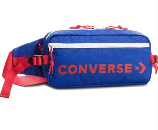 Riñonera Converse de color rojo, perfecta para llevar tus esenciales. - Compartimento principal con cremallera. - Correa ajustable. - Logo de Converse en la parte frontal.
