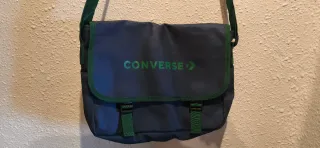 Bolso de hombro Converse con un diseño moderno y práctico. Ideal para llevar tablet o portátil diseño original no hay en España es completamente original traída de Estados Unidos. Nueva a estrenar - Bolsillos interiores y exteriores con cremallera - Fabricado en neopreno. - Ribete y correas en color verde. - Cierre con hebillas. - Correa de hombro ajustable