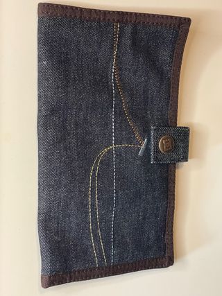 Cartera monedero de la marca DC, en color verde oliva y sin usar. Sus dimensiones cerrada son 18x10 cm. - Cierre de botón metálico. - Etiqueta con logo de la marca.