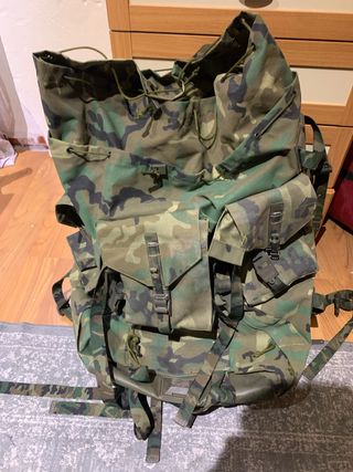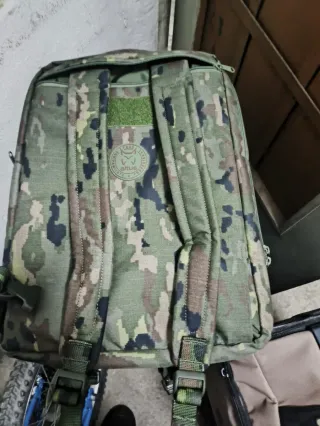 Mochila de estilo militar con estampado de camuflaje. Precio negociable - Diseño con múltiples compartimentos y bolsillos. - Cierre de cordón y solapa con hebillas. - Correas ajustables para mayor comodidad.