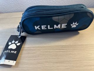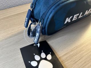 Estuche de la marca Kelme con un diseño moderno. - Estampado de camuflaje con tonos azules y grises. - Cierre de cremallera. - Incluye etiqueta. - Detalle de huella de pata.