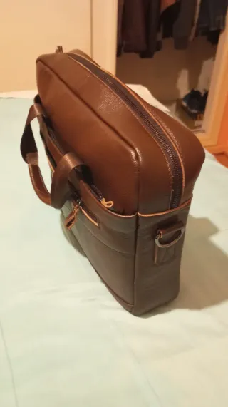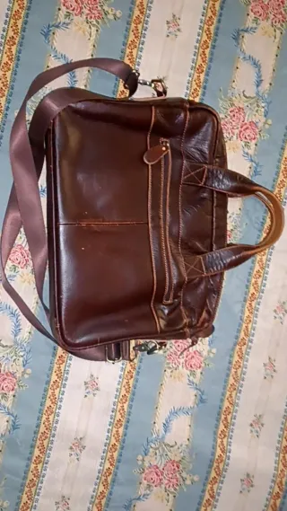 Maletín de cuero con un estilo vintage. Su diseño atemporal lo hace perfecto para cualquier ocasión. - Material: Cuero genuino. - Color: Marrón. - Diseño: Vintage. -signo de desgate en el color como se puede apreciar. - le falta un pequeño remacha como se puede apreciar en un tirador de la cremallera de hay su precio . - Correa Corrediza con un elegante engarce #cuero #pielegitima #vintage #maletin #bolso #oficina
