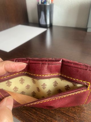 Billetera de cuero con un diseño elegante y práctico. - Compartimento principal. - Bolsillo interior. - Cierre de botón a presión.