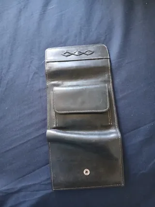 Estuche de cuero sintético con un diseño elegante. - Material: Cuero sintético. - Cierre de cremallera.