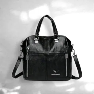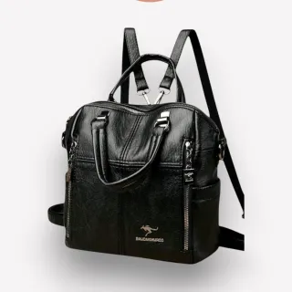 Mochila versátil de la marca Baudismuroo en color negro. Diseñada para llevar tus pertenencias con estilo y comodidad. - Material de cuero sintético. - Múltiples compartimentos con cremallera. - Asas superiores y correas ajustables para llevar como mochila o bolso.