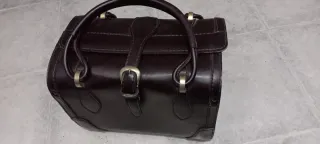 Elegante bolso de mano de cuero con un diseño clásico y atemporal.30 x25 cm aproximado - Material: Cuero genuino. - Color: Marrón oscuro. - Estilo: Vintage. - Cierre con hebilla. - Asas rígidas.