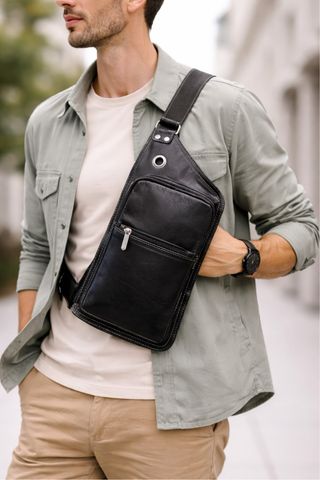 Bandolera de cuero con un diseño moderno y práctico. - Material: Cuero - Diseño unisex - Cierre de cremallera frontal - Correa ajustable