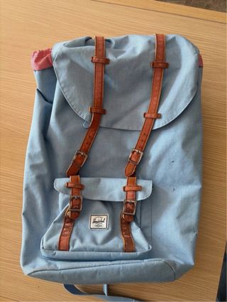 Mochila de la marca Herschel con un diseño clásico y funcional. Perfecta para el día a día o para escapadas. - Tirantes ajustables de cuero. - Bolsillo frontal con cierre de hebilla. - Detalle de rayas rojas en los tirantes superiores.