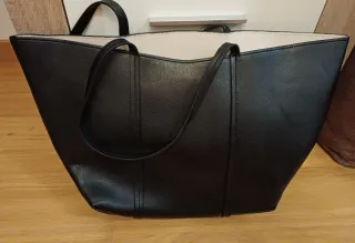 Bolso tipo capazo de gran tamaño, perfecto para el día a día. Incluye una bolsa interior a juego, que se puede quitar. Rígido de material. Ligero. - Material exterior de cuero sintético. - Asas cómodas para llevar al hombro. - Cierre SIN CREMALLERA , NI CLIP. NUEVO , SIN ESTRENAR CON ETIQUETA. MARCA ZARA. Entrega en mano . NO ENVIO