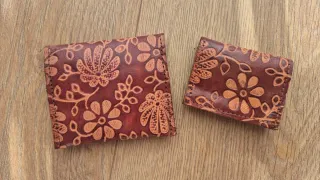 Conjunto de dos carteras de cuero con un bonito diseño floral. - Elaboradas en cuero. - Estampado de flores y hojas. - Cierre de botón a presión. - La cartera grande va forrada con tela negra negra - Ver medidas en las últimas fotos