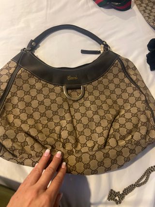 Bolso grande de estilo vintage - Diseño con el monograma GG característico. - Combinación de colores beige y marrón. - Asa de cuero. - Acabados en cuero oscuro.