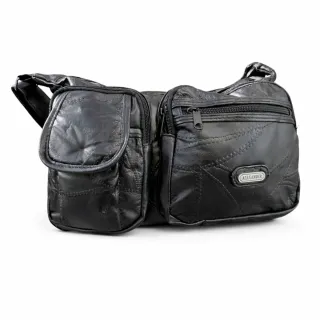 Precioso bolso bandolera de la marca Bosanova. Es de cuero negro y tiene un diseño elegante con grabados. - Diseño elegante con detalles grabados. - Asa larga para llevarlo al hombro. - Cierre de cremallera. - 2 compartimentos grandes con pequeños compartimentos interiores