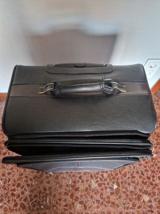 maletín de cuero grande tamaño 40x32, tiene bandolera para poner y está un poquito desgastado por dentro