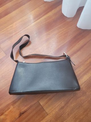 Elegante bolso de mano de Zara. - Diseño acolchado con costuras verticales. - Asa de cuero con cadena metálica. - Cierre de solapa.