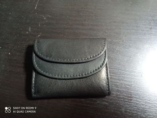 pequeño monedero d cuero negro con mini billetera
