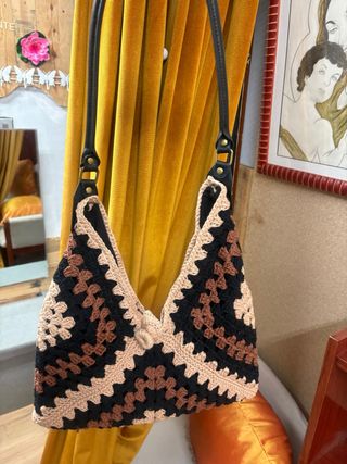 Bolso de crochet beige y negro