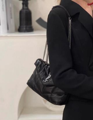 El bolso YSL negro Lou Lou (dimensiones: 27 cm x 17 cm x 11 cm) es una pieza representativa de la marca. Su forma redondeada y suave, junto con el icónico logo metálico plateado, emite una sofisticación única. El cuero de becerro suave le da un toque ligero y una sensación agradable al tacto. Con el tamaño adecuado para llevar lo esencial, este bolso se adapta tanto a atuendos informales como formales, elevando el estilo con su elegancia y distinción.