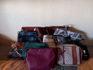 Lote de 10 bolsos de mujer en diferentes colores y marcas. De piel, polipiel, tela, mimbre, cuero…