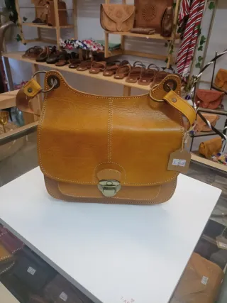 Bolso de cuero con un diseño elegante y atemporal. Perfecto para complementar cualquier atuendo. Hecho a mano - Material: Cuero - Cierre con hebilla metálica. - Correa ajustable para llevar al hombro o cruzado. Medidas: Largo - 23 cm Hancho - 15,5 cm Ancho - 6,3 cm Bolso de Mujer, es de estilo casual, en material de cuero y de color negro o maron. Cuenta con correa de hombro, larga, removible y regulable. Además, tiene un cierre en el compartimento principal. ¡Bolso con amplia capacidad para llevar lo que necesites con estilo! Nada de producción chiná o turca.