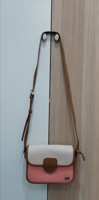Bolso de mano con un diseño bicolor muy chic. - Combinación de tonos rosa y blanco. - Correa ajustable para llevar al hombro. - Cierre de solapa con detalle de cuero. - Logo de la marca en la parte frontal.