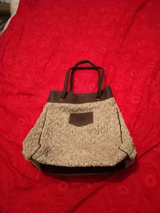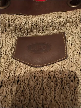 Elegante bolso de mano de la marca Lupo, con un diseño tejido en tonos beige y detalles en marrón.Mide de ancho 30 cms, de alto 37 centímetros, las asas miden 26 cms - Material exterior tejido. - Detalle de etiqueta de cuero con logo. - Acabado con costuras visibles.