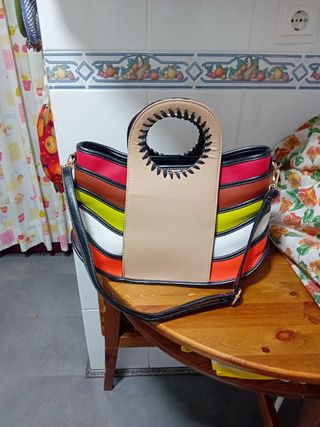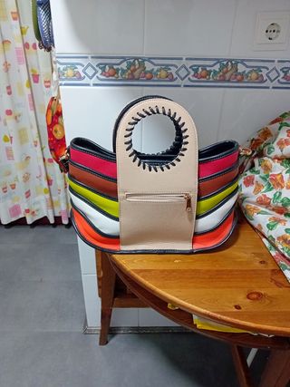 Se ofrece un lote de mas de 25 bolsos para mujer. Son varios bolsos de diferentes estilos y tamaños. De cuero, de raso, de tela, - Algunos son de cuero. - Otros tienen un diseño elegante. - Hay una variedad de colores, incluyendo negro y marrón. - Perfectos para cualquier ocasión. Lote para vender o disfrutar por poco cada bolso y hay Afolfo Domínguez, DK, y otras firmas de moda Regalo maleta para transporte y un par de monederos. Solo con los 2 de fiesta ya está amortizada la compra y esos 2 estan sin estrenar. 10€ un y si quieres todos los dejo en 100€ y son 25 uds y regalo maleta.