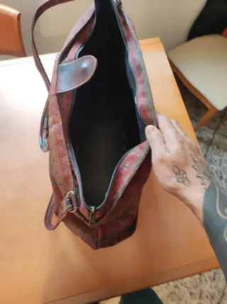 bolso de cuero y lona