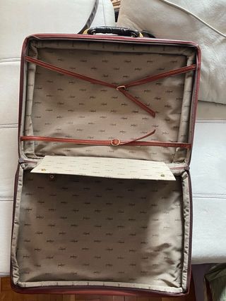 Maleta de gran tamaño con unas medidas de 40x60 cm. Perfecta para viajes largos. - Asa superior de cuero. - Bolsillo lateral de cuero.