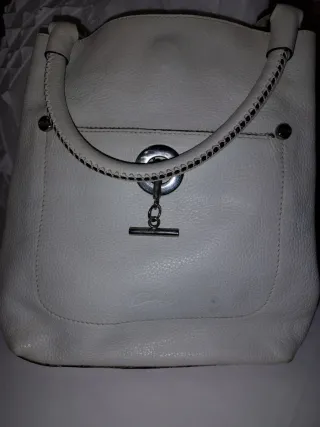 Bolso de cuero en tono beige, con un diseño elegante y práctico. - Material: Cuero - Color: Beige no sabemos la marca ya que fue un regalo