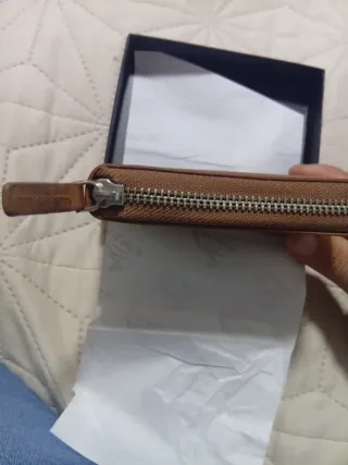 Billetera de cuero marrón con cierre de cremallera. - Diseño clásico y elegante. - Material de cuero de alta calidad. - Cierre de cremallera para mayor seguridad.