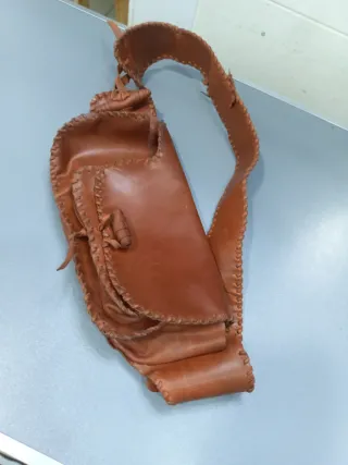 Riñonera de cuero hecha a mano con un diseño único más tiempo guardado que de uso y de regalo una cartera artesanal también - Material: Cuero - Acabado artesanal - Cierre con cordones.C-5.